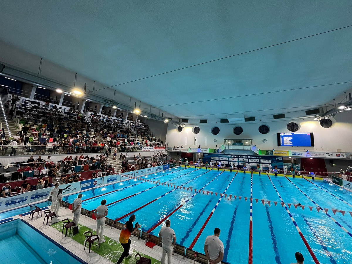 Laut und schnell ging es zu in der Schwimmoper in Wuppertal bei den Deutschen Kurzbahnmeisterschaften im Schwimmen (DKM). Vom 13.11.–16.11. war das Stadtbad Johannisberg, die sogenannte Schwimmoper, gefüllt mit den besten Schwimmerinnen und Schwimmern Deutschlands. 12 der rund 900 Startenden waren aus Freiburg: Lea Amann (Jg. 2007), Charlotte Berlinghof (2005), Enzo Fath (2005), Leo Fath (1999), Simon Grimm (1995), Thomas Holzkamm (1996), Sophia Klawitter (2009), Charlotte Kluthe (2010), Alessa Mnich (2005), Eva-Laetitia Schmieg (2008), Linja Marie Weinberger (2011) und Vanessa von Wolffersdorf (2007). Damit hatten sich dieses Jahr deutlich mehr Schwimmerinnen und Schwimmer der SG Regio qualifiziert als in den Vorjahren (acht 2024, drei 2023). Ein Beweis, dass in Freiburg gut und erfolgreich am Beckenrand unter Cheftrainer Gerhard Hasler gearbeitet wird. Dies zeigen auch die Ergebnisse der Freiburger Athleten.