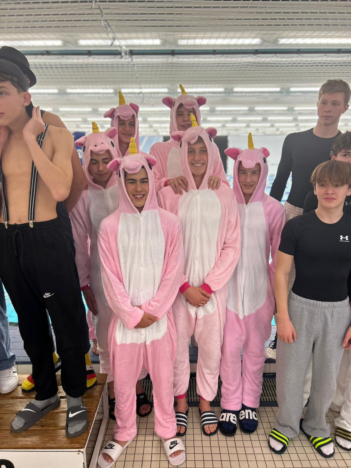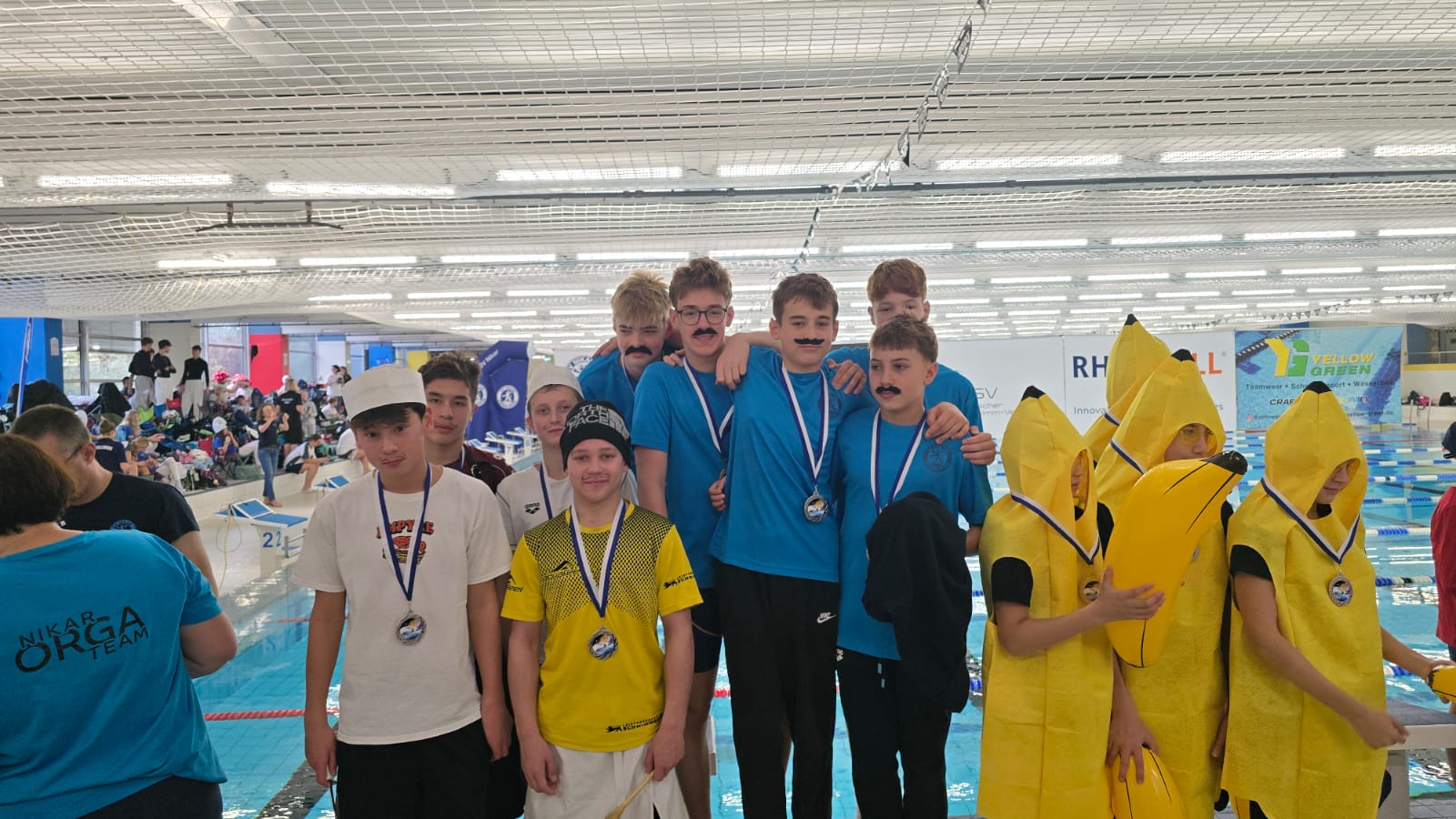 Am Wochenende des 22.und 23. 11. 2025 fuhren 31 Schwimmer und Schwimmerinnen der SG Regio Freiburg, 27 davon vom SSV Freiburg, jeweils frühmorgens mit dem Reisebus nach Heidelberg zum diesjährigen Badenfinale der DMSJ (Deutscher Mannschaftwettbewerb Schwimmen der Jugend). Bei den DMSJ werden in verschiedenen Altersklassen (fast) alle Schwimmarten in einer 4 x 100-Meter Staffel geschwommen und am Ende zusätzlich noch eine 4 x 100-Meter Lagenstaffel. Eine Ausnahme gibt es bei der Jungs und Mädchen der D-Jugend, also den 10- und 11-jährigen, die die Schmetterlingsstrecke in einer 4 x 50-m-Staffel schwimmen dürfen. Am Ende werden alle Zeiten addiert und alle Mannschaften in einer traditionell äußerst amüsanten Veranstaltung geehrt. Ist es doch sowohl bei den Landesfinals als auch beim Bundesfinale, wofür sich die bundesweit acht (A- und B-Jugend) bzw. zwölf (C- und D-Jugend) schnellsten Mannschaften qualifizieren doch Brauch mit witzigen Kostümen zur Siegerehrung zu schreiten.