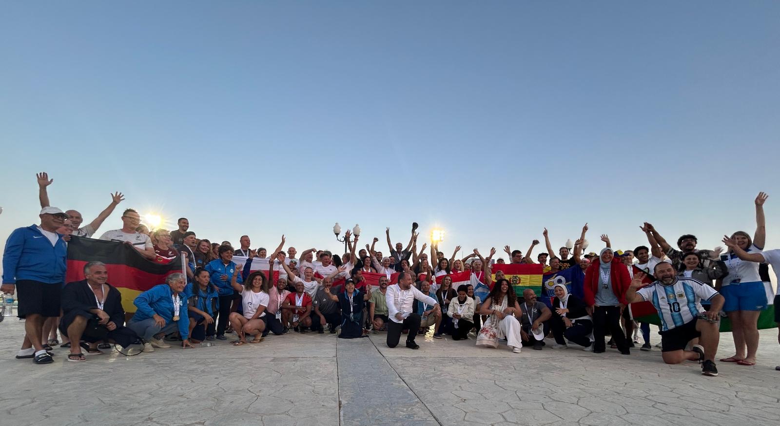 Zum Mittagessen ging es mit dem Transfer zurück in die Unterkunft auch diese verlieft ohne Probleme und man hatte die Möglichkeit durchzuatmen. Zurück im Schwimmbad gab es nach dem Einschwimmen auch die offizielle Eröffnungsfeier. Der zweite Abschnitt startete direkt mit der längsten Strecke: 800m Flossenschwimmen. Viele Sportler aus unserem Team stellten sich dieser Strecke. Es kamen direkt die nächsten Podiumsplätze hinterher. Mit den Erkenntnissen aus dem Morgenabschnitt ging es auch für mich am späten Abend nun zu den 50m BiFin. Dort konnte ich einen neuen deutschen Altersklassenrekord (AK30-39) aufstellen. Der Abschnitt wurde noch mit einer 4x50m Flossenschwimmstaffel beendet. Dort wurde unsere Staffel in der Altersklasse 140+ Weltmeister. Unsere zweite gemeldete Staffel der Altersklasse 220+ (zu der auch ich gehörte) belegte den 4. Platz.