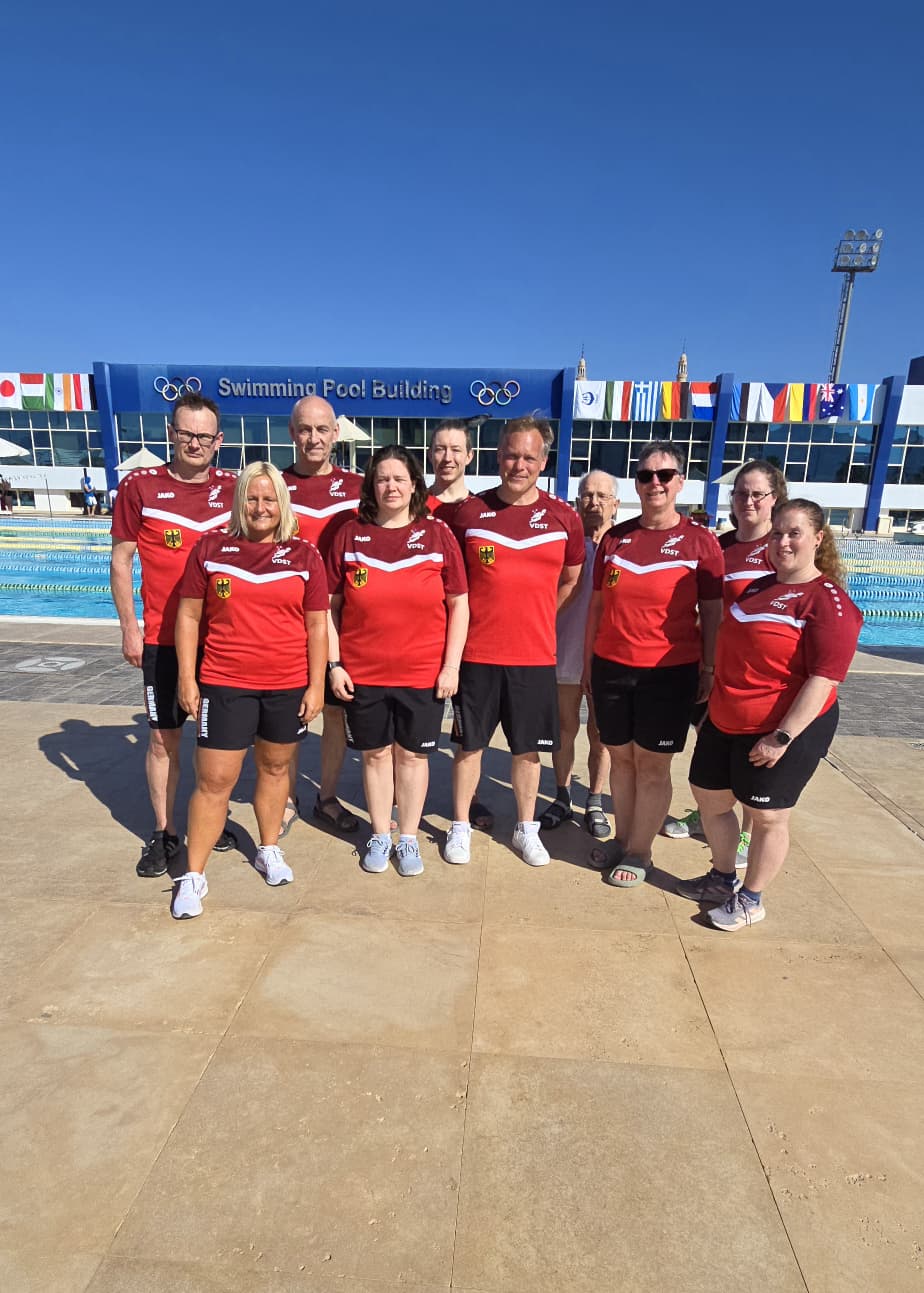 Die Wettkämpfe wurden in einem Freibad ausgetragen, was bei einer Außentemperatur von 28°C äußerst angenehm war. 10 Sportler aus Deutschland, die die verschiedensten Bundesländer –  Hamburg, Berlin, Brandenburg, Sachsen, Nordrhein-Westfalen und BadenWürttemberg – vertraten, haben die Altersspanne zum größten Teil von jung bis etwas älter abgedeckt.