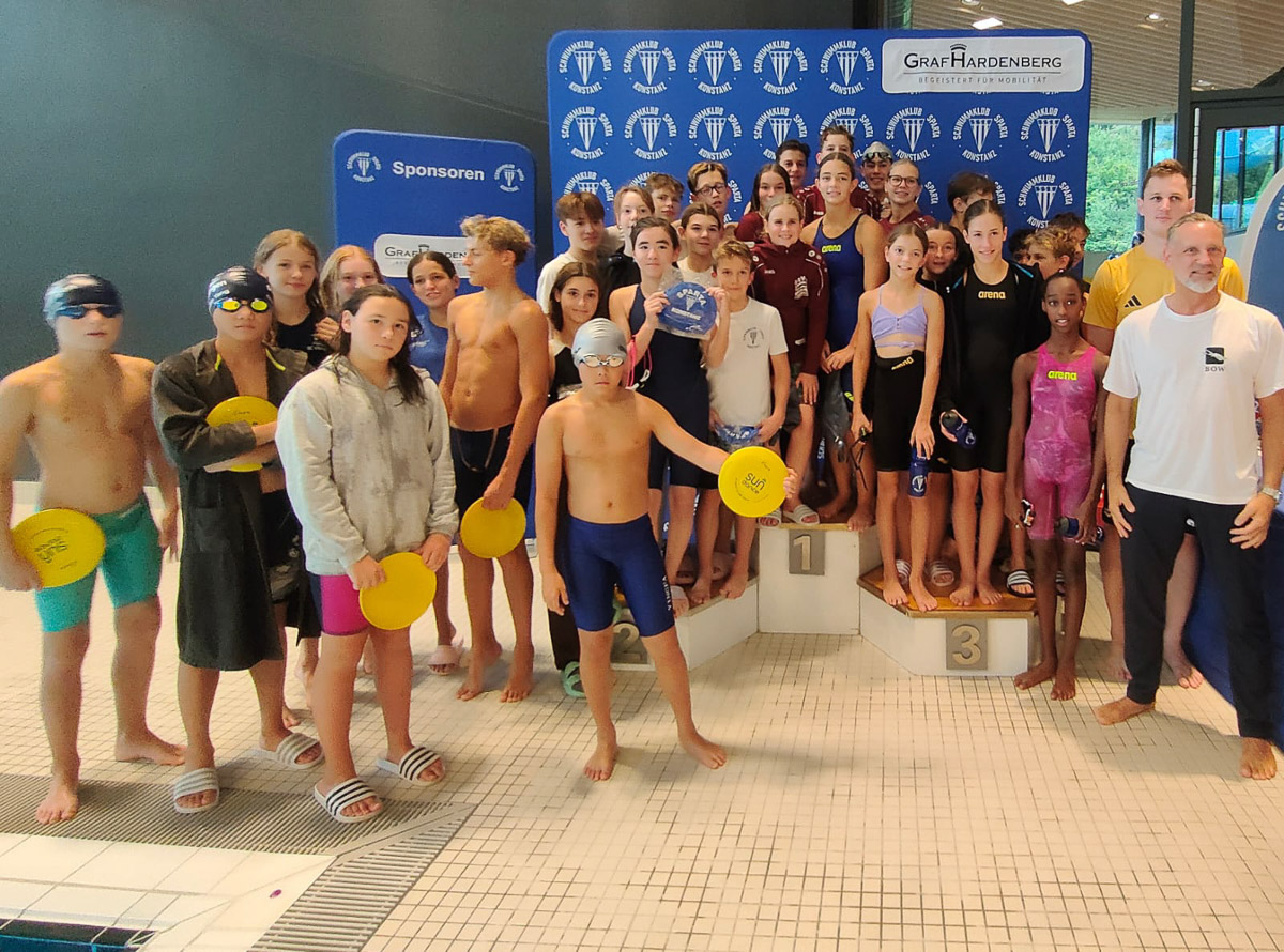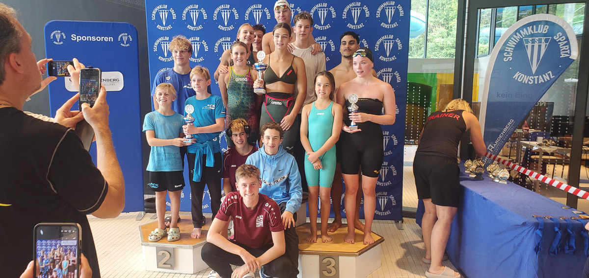 Der Auftakt in die Kurzbahn-Saison ist gelungen: Die Schwimmerinnen und Schwimmer des SSV Freiburg beendeten den 4. Sparta-Cup in Konstanz als punktbeste Gast-Mannschaft mit 1.095 Punkten. Starke Vereine wie den SC Kreuzlingen oder den SC Schaffhausen ließen sie hinter sich – obwohl vier der stärksten Sportler in den jeweiligen Jahrgängen wegen eines Kaderlehrgangs nur begrenzt starten konnten: Manja Evers, Maxim Shaliev, Linja Weinberger nur am Freitag, Sophia Klawitter gar nicht. Von den zehn teilnehmenden Vereinen war nur der SK Sparta Konstanz besser – er hatte aber auch Heimvorteil.